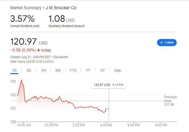 As of today, J.M. Smucker’s quarterly dividend is $1.08 per share, with an annual dividend yield of 3.57%. This yield is above the current rate of inflation, and if the dividend continues to rise, it should help hedge against inflation moving forward.