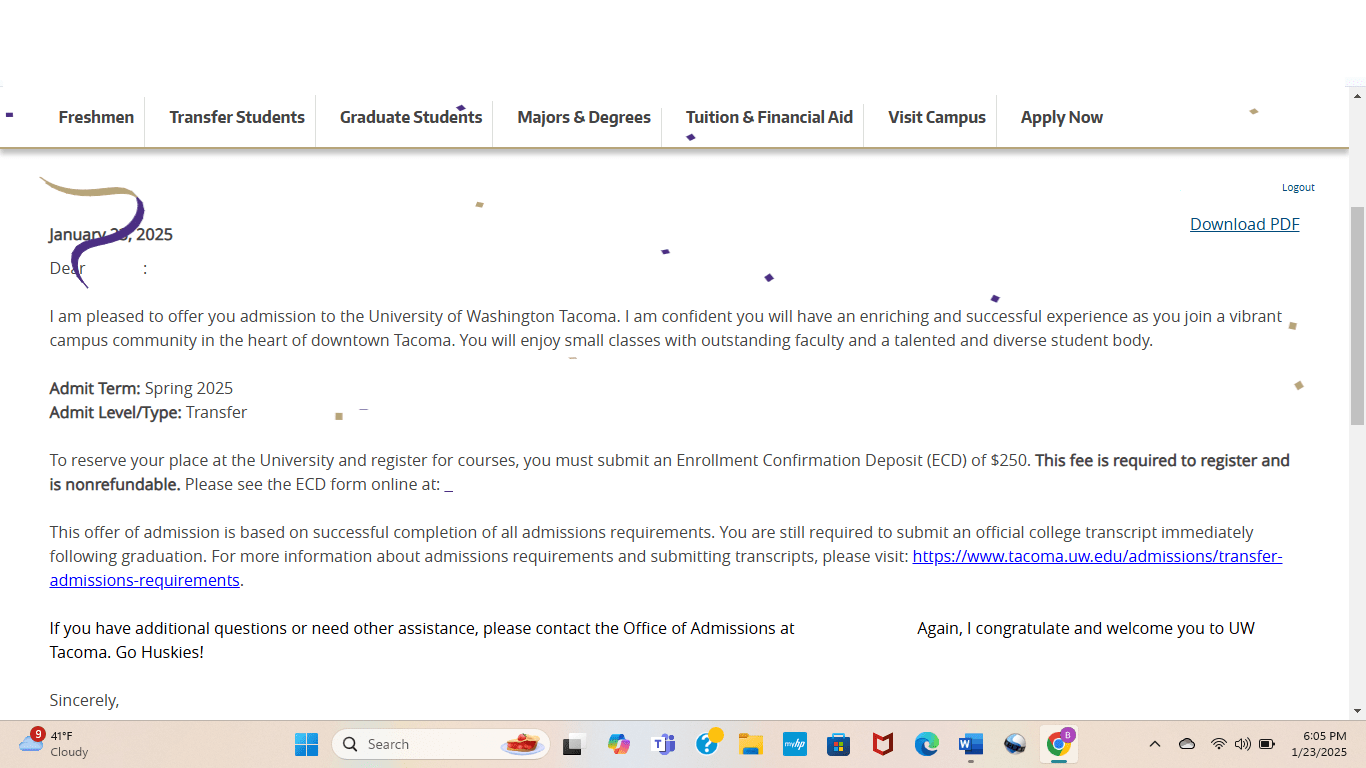As I opened the email, confetti exploded on the screen, making the moment feel even more real and celebratory.